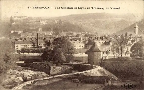 Ak Besançon Doubs, Gesamtansicht, Straßenbahnlinie Vesoul