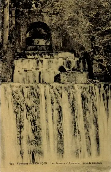 Ak Besançon Doubs, Les Sources d' Arcier, Wasserfall