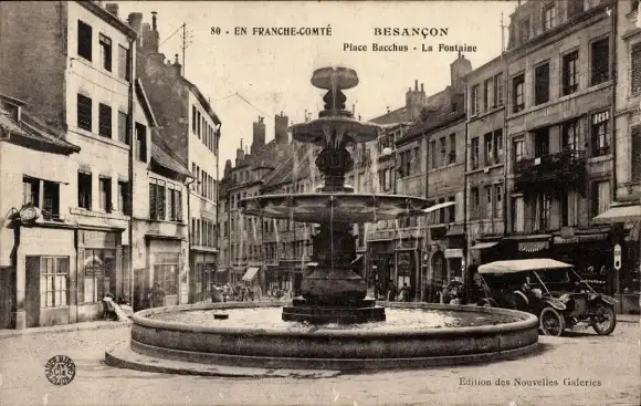 Ak Besançon Doubs, Place Bacchus, Fontaine