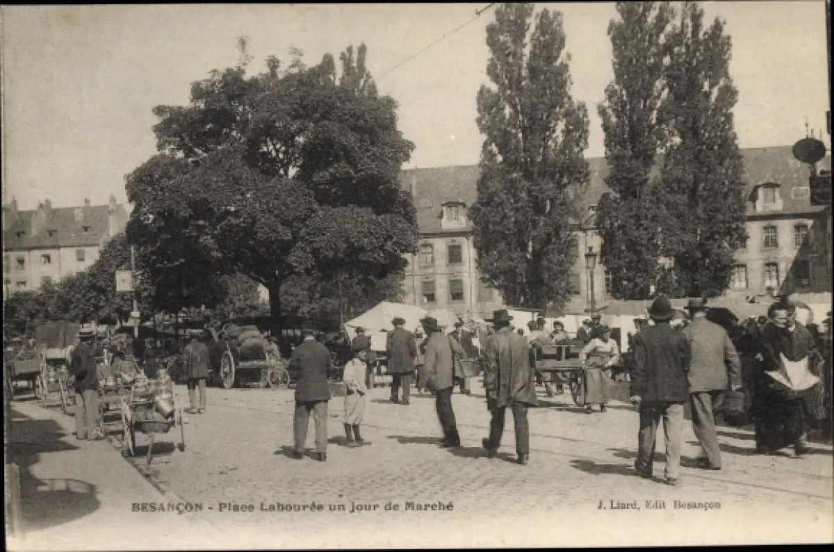 Ak Besançon Doubs, Place Labouree un jour de Marche