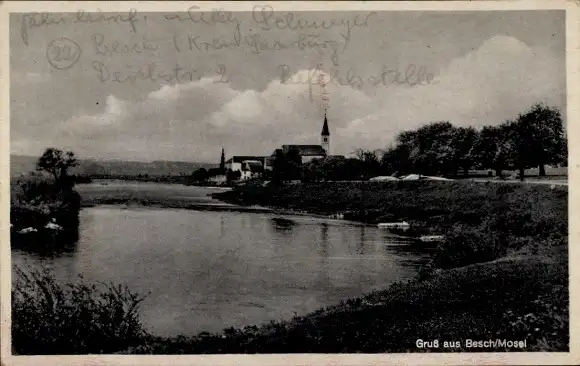 Ak Besch Perl an der Mosel, Teilansicht, Kirche