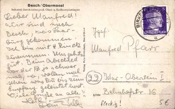 Zustand, siehe Scan, gelaufen, 1944 - ca 14 cm X 9 cm