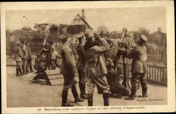 Ak Beschießung eines russischen Fliegers auf dem östlichen Kriegsschauplatz, I WK