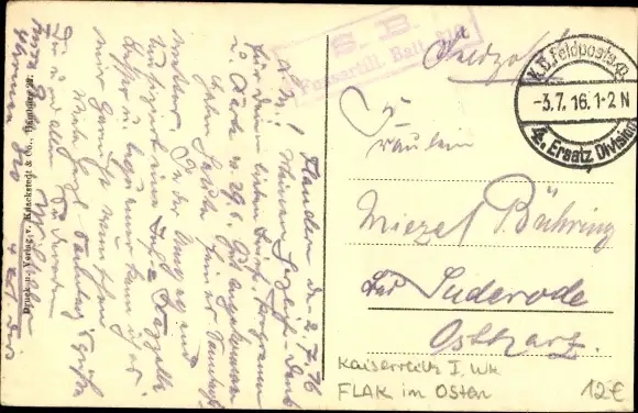 Zustand, siehe Scan, gelaufen, 1916 - ca 14 cm X 9 cm