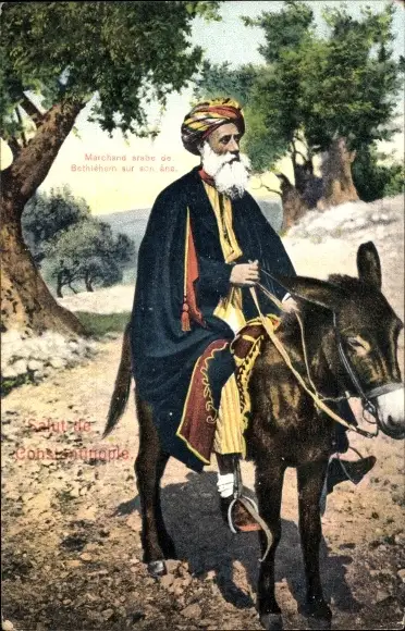 Ak Bethlehem Israel, Mann auf Esel reitend