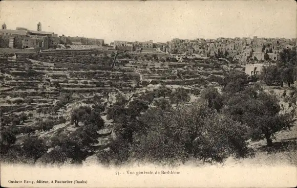 Ak Bethlehem Palästina, Ansicht von Hügel, Olivenbäume, Architektur