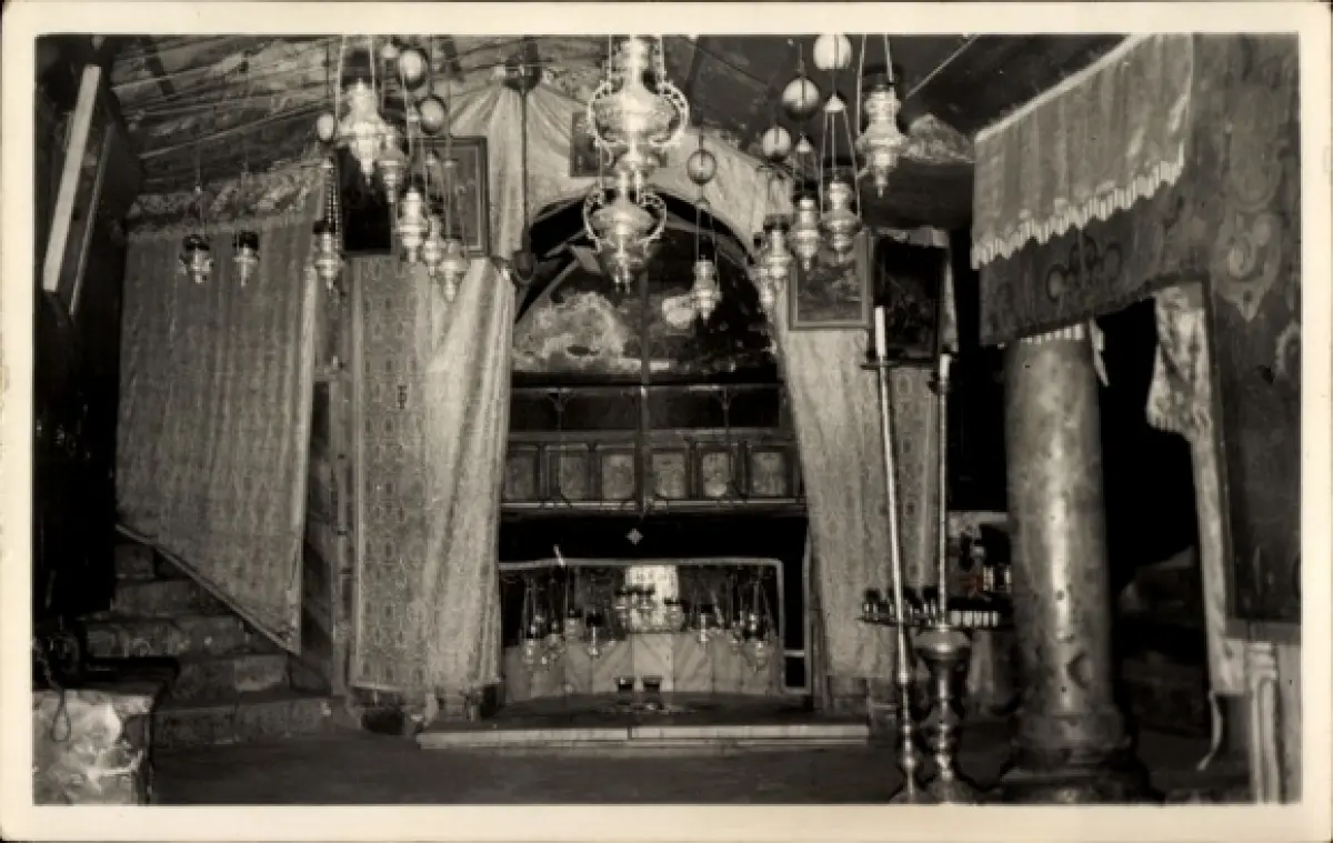 Ak Bethlehem Palästina, Kirche, Innenansicht, Stern von Bethlehem