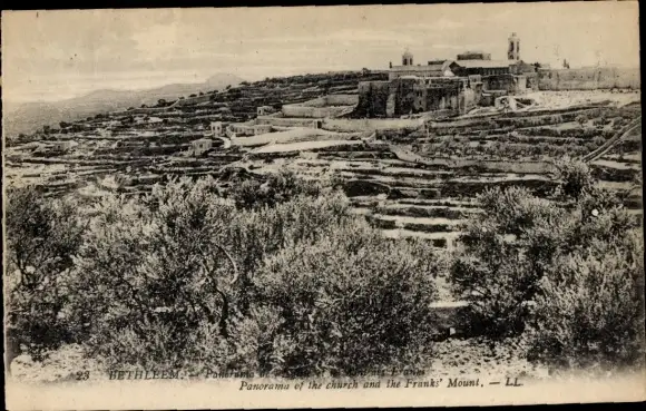 Ak Bethlehem Palästina, Panorama of the church and the Frank's Mount