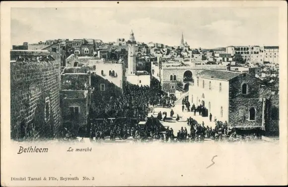 Ak Bethlehem Palästina, Stadtpanorama, Markt