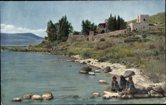 Ak Bethsaida Israel, Partie am Ufer, Mauer