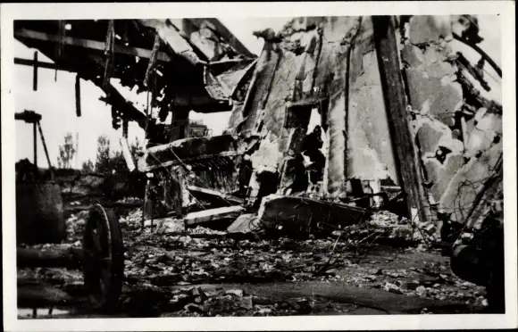 Ak Béthune Pas de Calais, Depot des locomotives, Kriegszerstörung, I WK