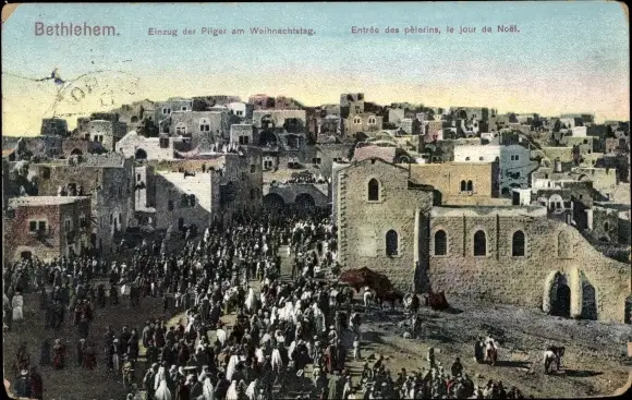 Ak Betlehem Israel, Einzug der Pilger am Weihnachtstag, Häuser