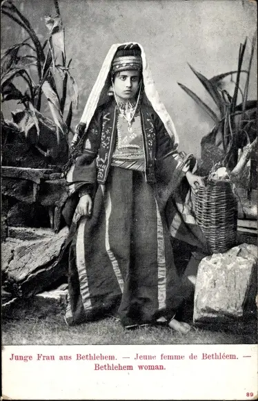 Ak Betlehem Palästina, Portrait einer jungen Frau in Volkstracht