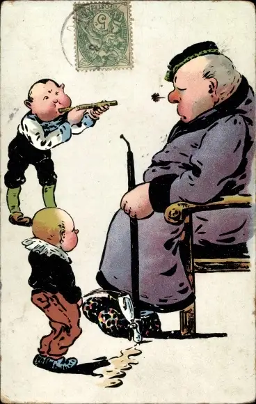 Ak Betrunkener Mann beim Schlafen, Junge pinkelt, Scherz