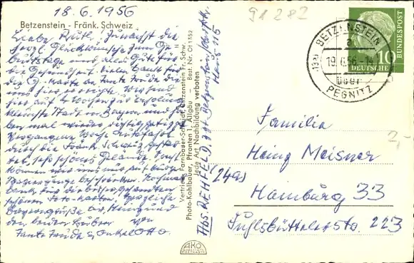 Zustand, siehe Scan, gelaufen, 1956 - ca 14 cm X 9 cm