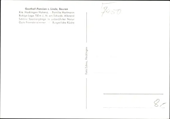 Ak Beuren Hechingen in Baden Württemberg, Gasthof Pension zur Linde