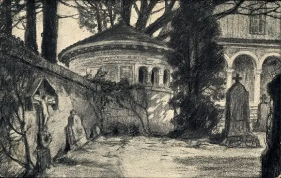 Ansichtskarte, Postkarte, Krematorium, Urne, Friedhof, Friedhöfe, Gottesacker