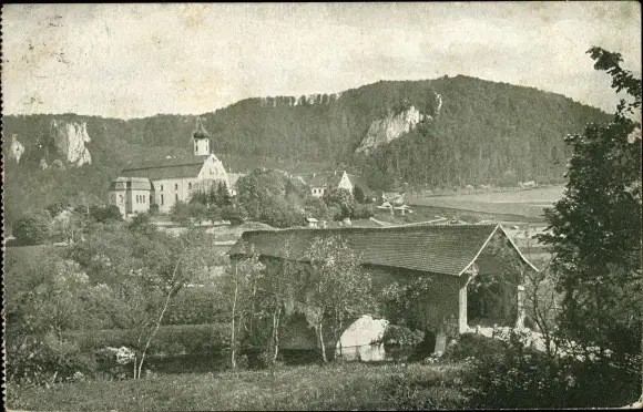 Ak Beuron an der Donau Württemberg, Teilansicht mit Donau Holzbrücke