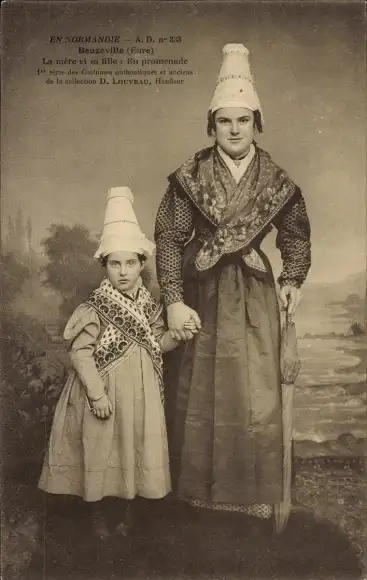 Ak Beuzeville Eure, Frau und Kind in Volkstrachten