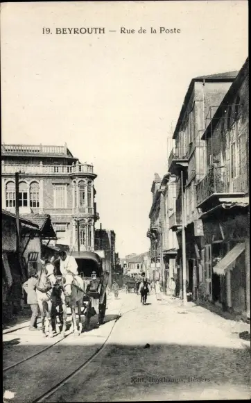 Ak Beyrouth Libanon, Rue de la Poste, Kutsche in der Poststraße