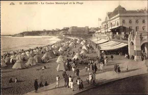 Ak Biarritz Pyrénées Atlantiques, Städtisches Casino, Strand
