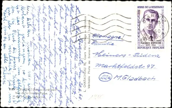 Zustand, siehe Scan, gelaufen, 1960 - ca 14 cm X 9 cm