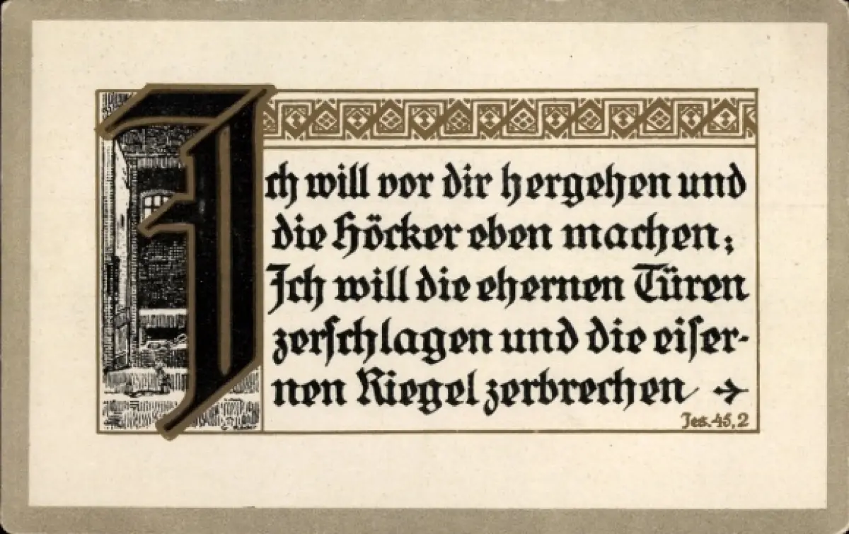 Ak Bibelzitat, Ich will vor dir hergehen..., Jes. 45,2