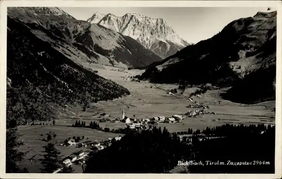 Ak Bichlbach in Tirol, Panorama mit Zugspitze