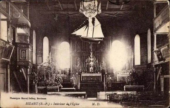 Ak Bidart Biarritz Pyrénées Atlantiques, Interieur de l'Eglise