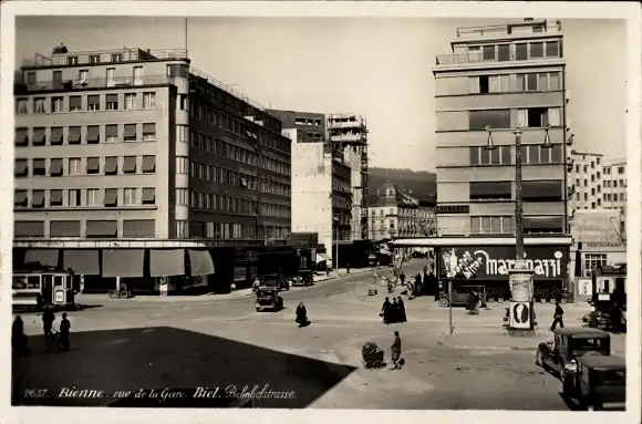 Ak Biel Bienne Kt. Bern, Bahnhofstraße, Geschäfte