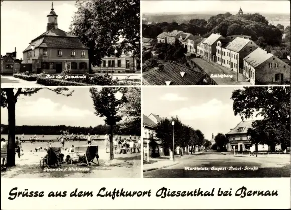 Ak Biesenthal in Barnim, Schlossberg, Marktplatz, Strandbad Wukensee, Rat der Gemeinde