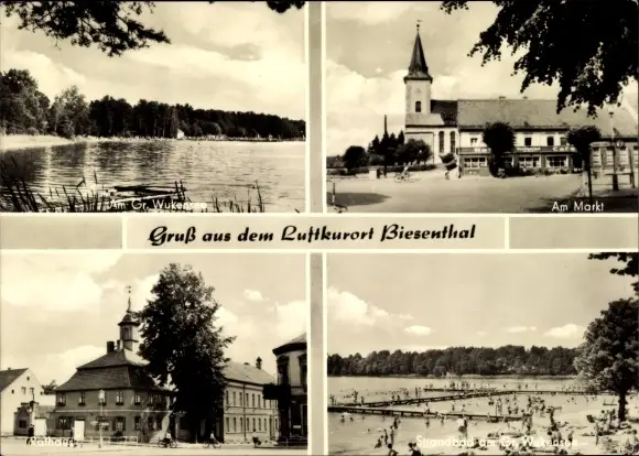 Ak Biesenthal in der Mark, Marktplatz, Strandbad, Rathaus, Gr. Wukensee
