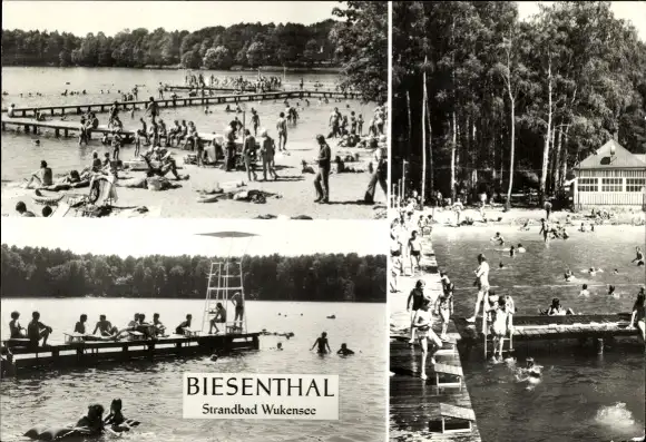 Ak Biesenthal in der Mark, Strandbad Wukensee, Badegäste