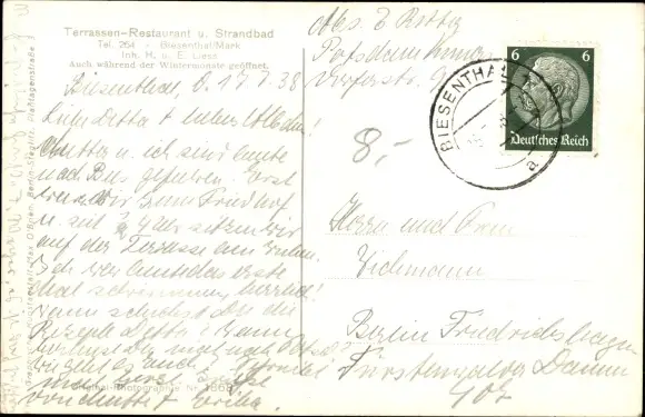 Zustand, siehe Scan, gelaufen, 1938 - ca 14 cm X 9 cm