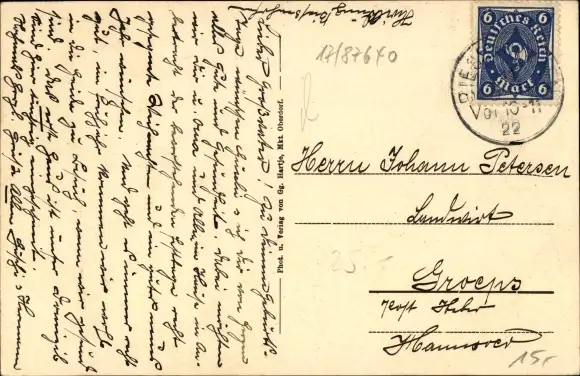 Zustand, siehe Scan, gelaufen, 1922 - ca 14 cm X 9 cm