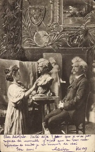 Ak Bildhauerin an der Arbeit, Büste, Modell, Wappen