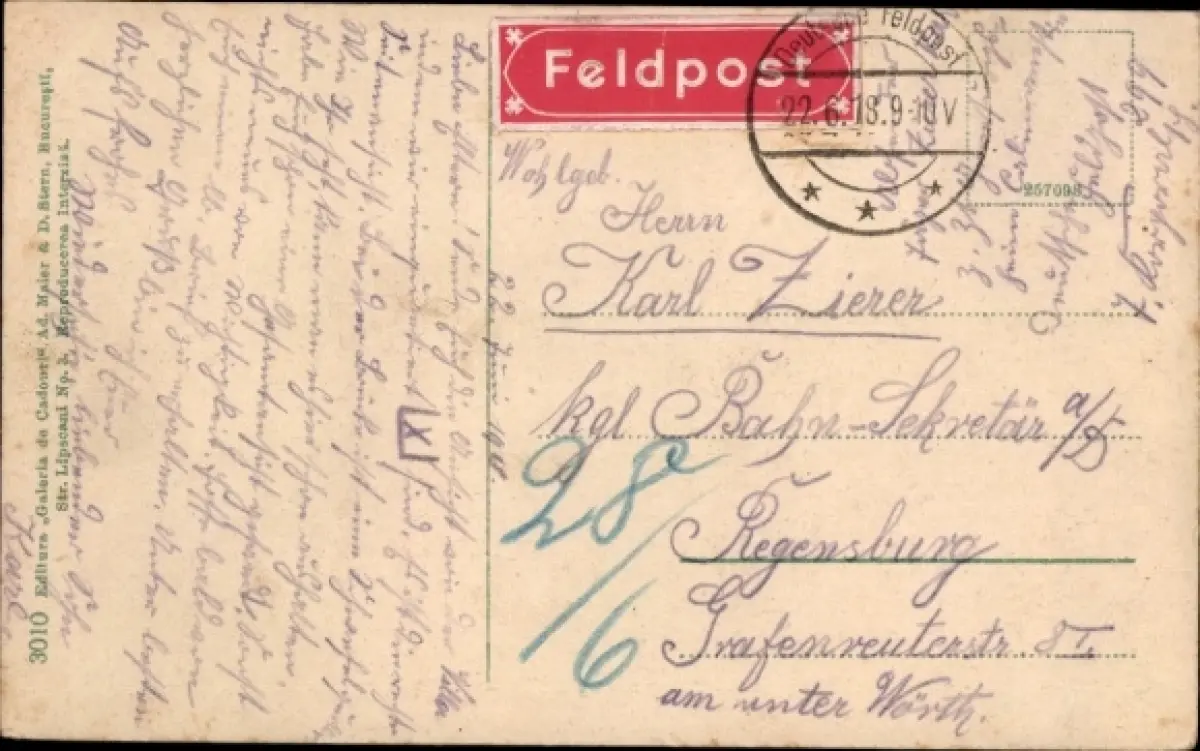 Zustand, siehe Scan, gelaufen, 1918 - ca 14 cm X 9 cm
