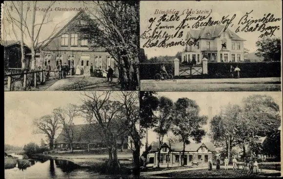 Ak Bimöhlen in Holstein, F. Wrage's Gastwirtschaft, Villa, Radfahrer