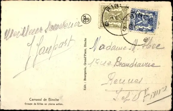 Ak Binche Wallonien Hennegau, Carnaval, Groupe de Gilles en pleine action