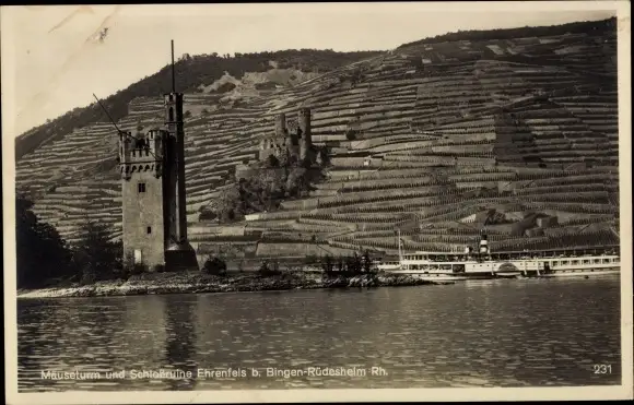 Ak Bingerbrück Bingen am Rhein, Mäuseturm, Schlossruine Ehrenfels, Dampfer