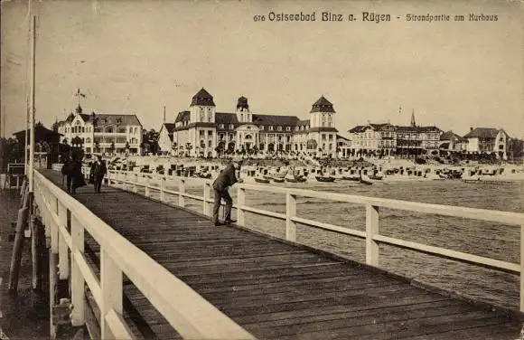 Ak Binz a. Rügen, Strand am Kurhaus, Seebrücke