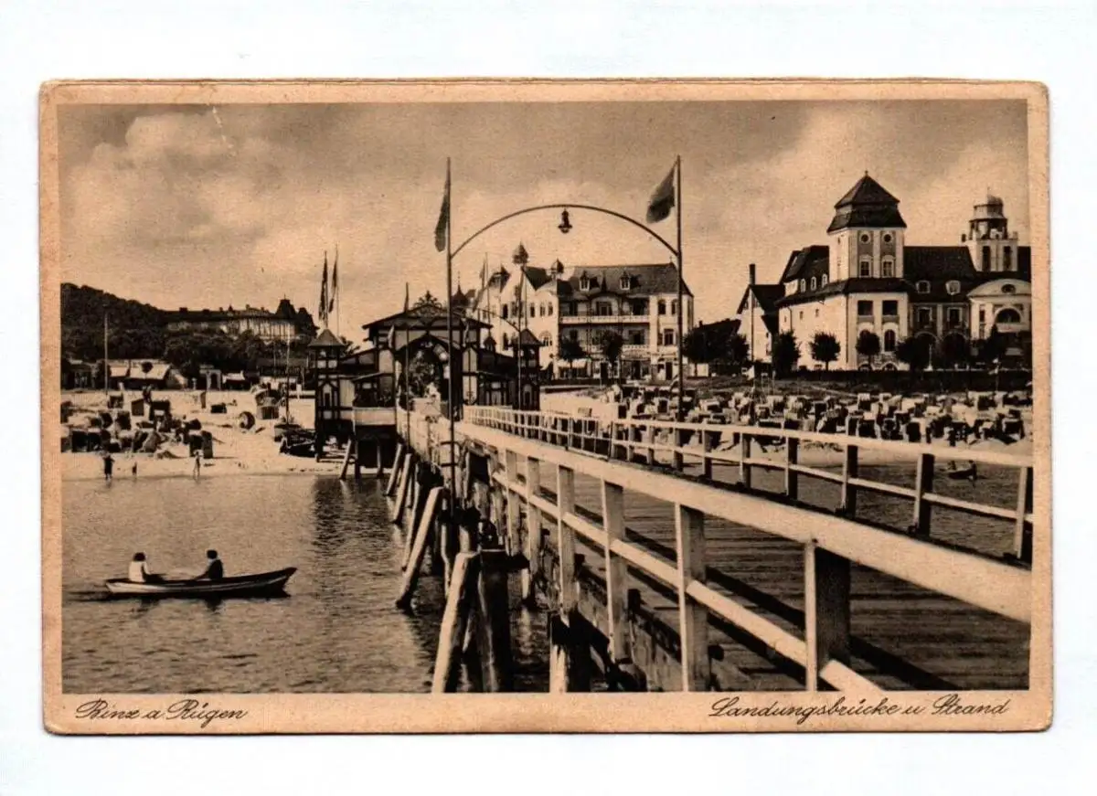 Ak Binz auf Rügen Landungsbrücke und Strand