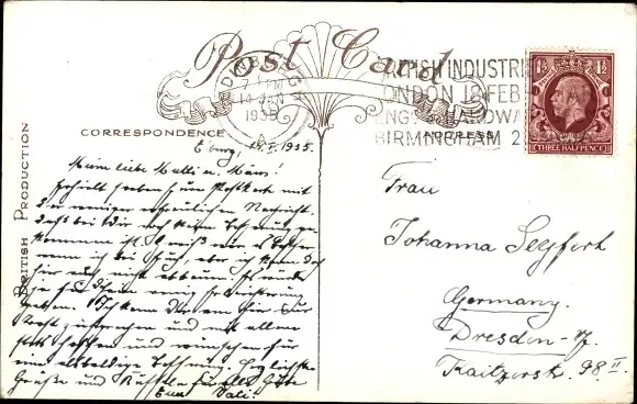 Zustand, siehe Scan, gelaufen, 1935 - ca 14 cm X 9 cm