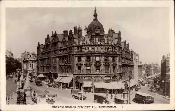 Ak Birmingham West Midlands England, Victoria Square and New Street
