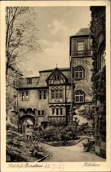 Ak Birstein im Main Kinzig Kreis Hessen, Im Höfchen des Schlosses