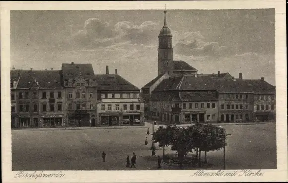Ak Bischofswerda in Sachsen, Altmarkt mit Kirche