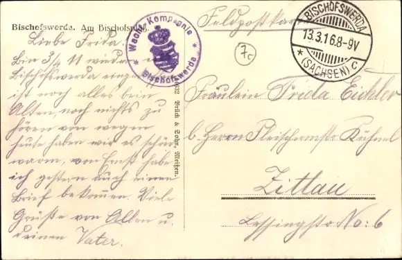 Zustand, siehe Scan, gelaufen, 1916 - ca 14 cm X 9 cm