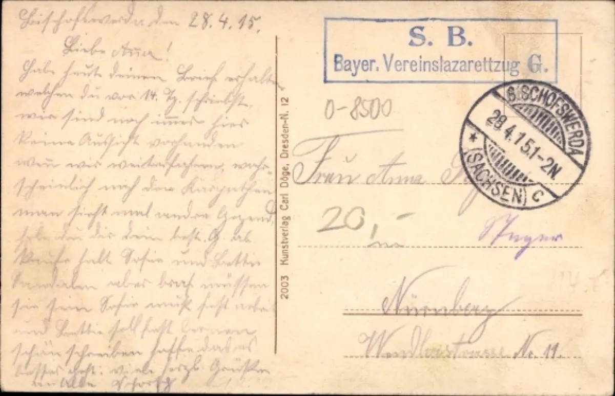 Zustand, siehe Scan, gelaufen, 1915 - ca 14 cm X 9 cm