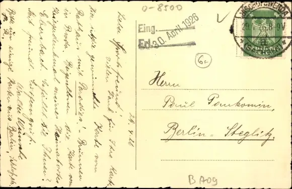 Zustand, siehe Scan, gelaufen, 1926 - ca 14 cm X 9 cm