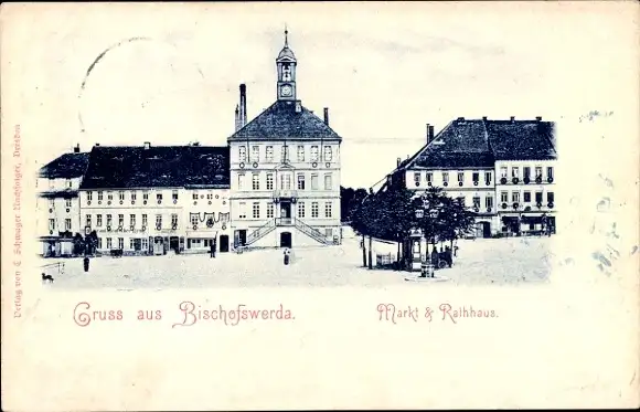 Ak Bischofswerda in Sachsen, Markt und Rathaus, Restaurant Deutscher Krug